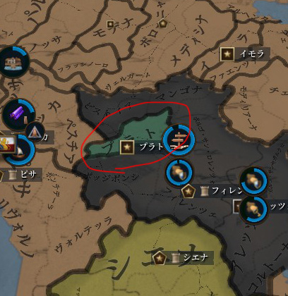 特にフィレンツェ州にある「プラト」という国は、ナポリと同君連合を形成しているためこちらからは攻められないのです。